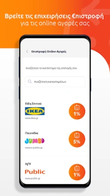 - Συνεργαζόμενες επιχειρήσεις για online αγορές με €πιστροφή.