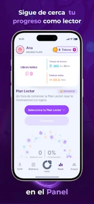 • Consulta información del progreso en cantidad de palabras leídas, libros leídos, palabras por minuto y tiempo de lectura.