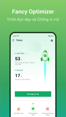 Fancy Optimizer là ứng dụng diệt vi-rút, dọn rác/bộ nhớ đệm cho Android nhanh, nhẹ và mạnh mẽ. Nó có thể xóa vi-rút, quản lý ứng dụng và dọn dẹp không gian lưu trữ chỉ bằng một lần chạm.