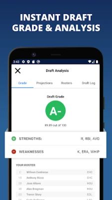 Review past draft grades to fine-tune your draft strategy. Save an unfinished mock draft to pick up where you left off later.