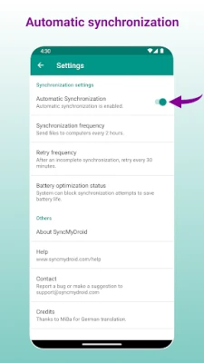 * SyncMyDroid copies the files you selected to your computer periodically or when you request it in the app.