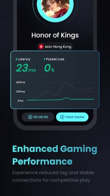 Key Features: - Intelligent routing technology that finds the fastest path to game servers - Real-time connection monitoring and optimization - Support for popular online games - Easy one-tap activation - no technical knowledge required - Performance statistics to track your connection improvements - Lightweight design with minimal resource usage