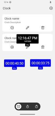 Create movable floating clocks, stopwatches, and timers anywhere on your phone screen. Add multiple clocks for different time zones on the screen at the same time. Customize with different parameters like text color, background color, and font size. Manage a list of multiple timers and stopwatches, and edit them with color, font style, text size, padding, and adjustable corner radius.