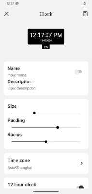 Personalize clock backgrounds with adjustable size, padding, radius, and color.