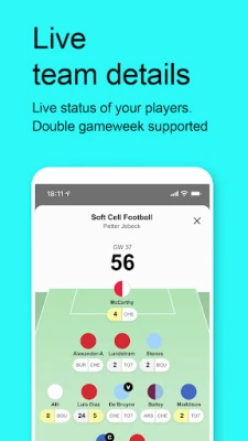 Live lists (season/gameweek) are updated live as events happen Live events (goals, assists, clean sheets etc.) Live bonus points Livescore of Premier League matches Captain and chip picks Push notifications on events of your own players