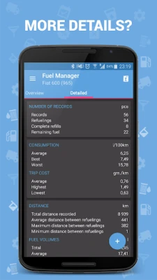 • Universal calculation of fuel consumption (full tank, milestones, calculation ща residues)