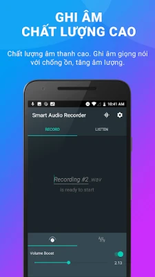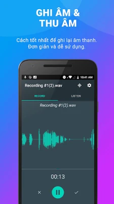Với nhiều lựa chọn để tinh chỉnh ghi âm, ứng dụng ghi am mp3 này rất hữu ích cho các buổi diễn tập và thu âm giọng hát cực hay. Nhanh chóng thử những ý tưởng mới, nghe kết quả và thực hiện những thay đổi với ghi am giong hat, ghi âm giọng hát có nhạc. Bạn có thể nhanh chóng chuyển đổi giữa ghi giọng nói, cuộc họp, bài giảng, âm nhạc và âm thanh thô với cài đặt và cài đặt trước cực kỳ dễ sử dụng khi sử dụng ứng dụng ghi âm tốt nhất.