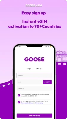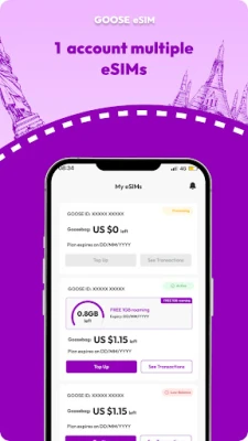 Download the APP, create an account and activate GOOSE eSIM instantly.