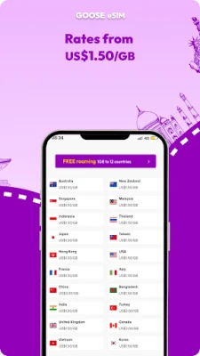 Say goodbye to expensive roaming fees and Go GOOSE! Connect instantly with GOOSE International eSIM and enjoy unbelievably attractive rates. No roaming fees — just easy, affordable, global connectivity.