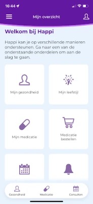 - Bestellen van medicatie: de Happi app ontzorgt jou doordat je geen herhaalrecepten