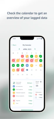 The Headache Calendar gives you an overview of your headache and migraine and how it develops over time.