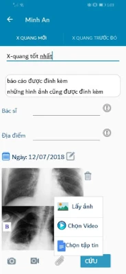 Đính kèm tài liệu y tế của bất kỳ loại nào (pdf, word ...v.v.) hoặc chụp ảnh hoặc ghi video.