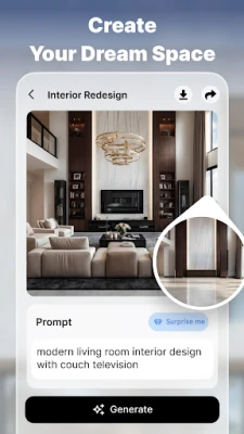 - Let the AI transform your room into a brand-new design based on your preferences.
