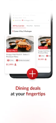 Hungry Hub is an online booking application that offers various types of special packages and is only available on Hungry Hub. Moreover, we partnered with more than 1,000+ restaurants all over Bangkok, Pattaya, Chonburi, Khao Yai, Phang-Nga, Koh Chang, Koh Samui, Phuket and more to come!