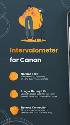 The Intervalometer for Canon app allows you to shoot long-exposure time-lapse recordings by connecting to your camera via Bluetooth and triggering it at set intervals.