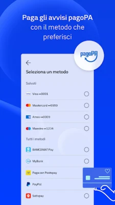 - pagare qualsiasi avviso pagoPA, inquadrando il codice QR o a partire da un messaggio ricevuto in app;