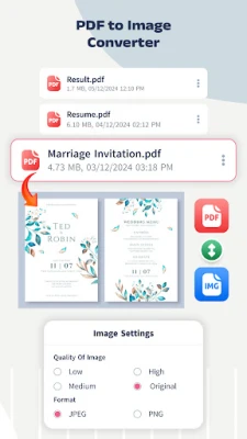 Convert PDFs to JPG, PNG, and other image formats effortlessly.
