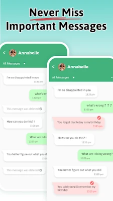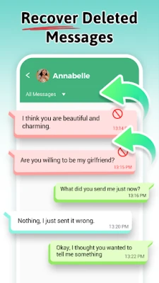 Với Ứng dụng khôi phục tin nhắn tuyệt vời này, bạn sẽ không bao giờ bỏ lỡ bất kỳ cuộc trò chuyện nào do phía người gửi xóa! Khôi phục tin nhắn đã xóa - xóa tin nhắn khôi phục Ứng dụng giúp bạn khôi phục các tin nhắn đã xóa (rdm), bao gồm hình ảnh, video, ghi chú thoại, âm thanh, ảnh gif động và nhãn dán!