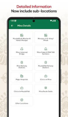 Easily locate your accommodation, nearby bus stations, hospitals, important landmarks, and other essential places in and around Makkah and Madinah using the in-app map.