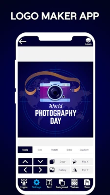 Logo Maker also provides professional photo editing and text editing tools like: Font, Flip, Rotate, Resize, Color,and lots more that you'll need to create beautiful original logos.