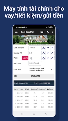 - Cung cấp kế hoạch trả nợ hàng tháng chi tiết khi bạn chọn số tiền vay, lãi suất, thời hạn vay và loại khoản vay.