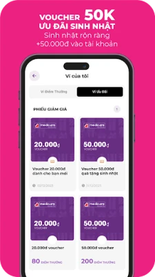 Tải ứng dụng và trở thành thành viên "Love Your Life Club", để tận hưởng hàng loạt quyền lợi hấp dẫn: - Hơn 100+ sản phẩm giá ưu đãi dành riêng cho thành viên. - Tích điểm mỗi lần mua sắm từ 50.000d và đổi ưu đãi hấp dẫn - Quà sinh nhật đặc biệt, ưu đãi bất ngờ - Và đó chưa phải là tất cả! Với ứng dụng MEDiCARE, bạn còn được tham gia vào các chương trình ưu đãi lên đến 50% từ các thương hiệu nổi tiếng và đáng tin cậy. Khám phá những sản phẩm chăm sóc sức khỏe và sắc đẹp hàng đầu với mức giá hấp dẫn chưa từng thấy.