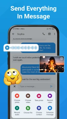 Send multimedia messages with just a tap. Express more with emojis, stickers, and funny faces.