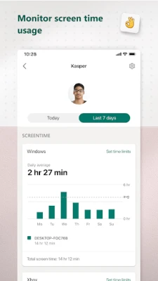 Giúp con bạn cân bằng hoạt động thời gian trên màn hình. Đặt giới hạn cho các ứng dụng và trò chơi cụ thể trên Android, Xbox hoặc Windows. Hoặc sử dụng tính năng quản lý thiết bị để đặt giới hạn thời gian sử dụng thiết bị trên các thiết bị trên Xbox và Windows.