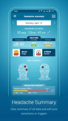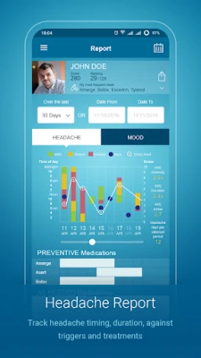 * Reports of headaches, triggers, weather, moods and medications for you and your headache specialist team
