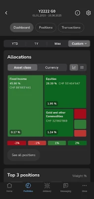 - Portefeuille : détails de vos positions, transactions et analyses par classe d’actifs ou devise