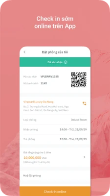 Hỗ trợ bạn check-in trước qua app để giảm thiểu thời gian chờ đợi làm thủ tục tại khách sạn.