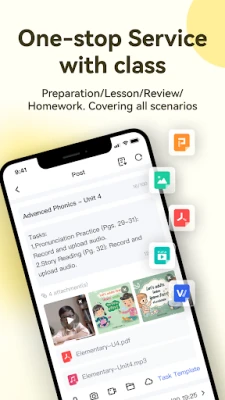 -Slide, doc, audio, and video, rich file types are supported in the online classroom