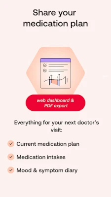 You can not only log your meds but also track your mood and general well-being in the app’s mood diary. Record measurements, such as blood pressure and weight. If you are living with diabetes, you can use MyTherapy as a diabetes logbook and track blood glucose. Or you might want to stay on top of your mental health using MyTherapy. Overall, MyTherapy supports ~50 measurements. The app’s symptom tracker is popular with users living with multiple sclerosis, rheumatoid arthritis, psoriasis, or cardiovascular diseases such as atrial fibrillation. Want to share the results of your symptom tracking? Print a PDF health report to share your progress with your doctor.