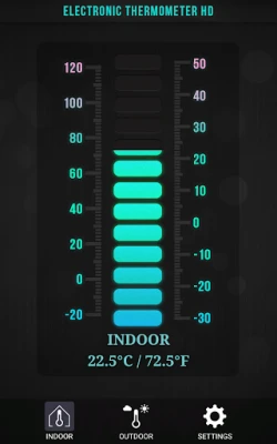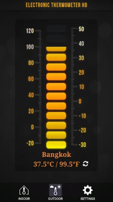 Ứng dụng này là một nhiệt kế, hiển thị nhiệt độ trong nhà và ngoài trời (thang độ C và độ F).