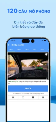 ** Bộ 120 câu hỏi mô phỏng tình huống giao thông được phát triển dựa trên tình hình giao thông thực tế do Tổng Cục Đường Bộ Việt Nam ban hành.