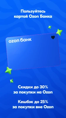Хотите сэкономить? Оформляйте Ozon Карту и оплачивайте ей товары с зеленой ценой со скидками до 30%. А при покупках вне Ozon получайте кешбэк до 10%.