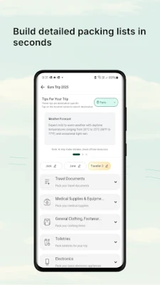 📱 Convenient 'Go Mode' - Once your adventure begins, activate Go Mode to access all your travel information from a single, streamlined screen – even offline! Keep your itinerary, packing lists, and important documents at your fingertips. Perfect for when you're on the move or in areas with limited connectivity.