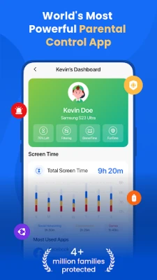 Set daily or hourly limits on device usage to encourage a healthy balance between screen time and other activities. Quickly approve or lock apps as needed.