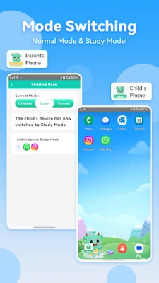 ◆ Mode Switching Switch between Normal Mode and Study Mode. In Study Mode, only the apps you specify can be seen or used, ensuring that your child accesses only learning-related apps while studying. This reduces distractions and enhances focus on their studies.
