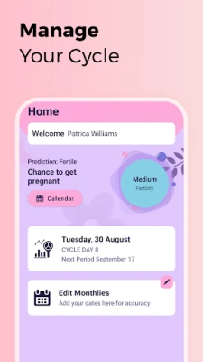 • Track your menstrual cycles with ease