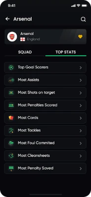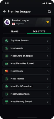 ⚽ Top Stats: Identify the top performers with ease. See who's leading the race for most goals, assists, shots on target, penalties scored, tackles won, and more, at both the league and team levels.
