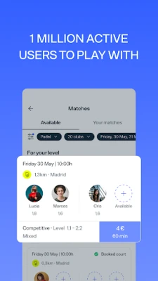 Discover Playtomic, the app that connects you with an ever-growing community of over 1 million players of padel, tennis, and other racket sports. Enjoy a unique experience with our intuitive and easy-to-use app, which was designed with you in mind.