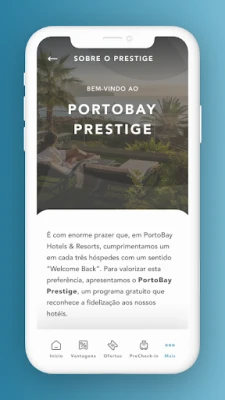 - Register to access the Prestige by PortoBay loyalty programme and its benefits; - Check your membership level and card; - Get access to your advantages and rewards; - Check your discounts at Prestige Partners at destination (such as shops, rent-a-car, typical shopping, tourist attractions etc); - Fill-in our pre-check-in to guarantee a swifter and more convenient arrival; - Chat with hotel team; - And much more...