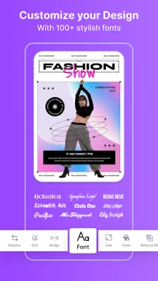 Poster Maker App has a growing library of customizable design templates. We have many categories of templates ready to give you a great start. With just a few taps, you can edit the fonts, colors, and styles and create a fantastic design that reflects your personality, style, and brand identity.