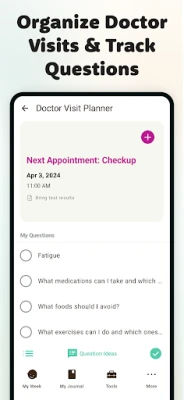 • Log your pregnancy symptoms, track medications, and monitor your vitals to keep both you and your baby safe.