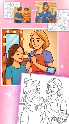 Coloring Game: Fill amazing professions coloring pages with bright colors, patterns, and stickers!