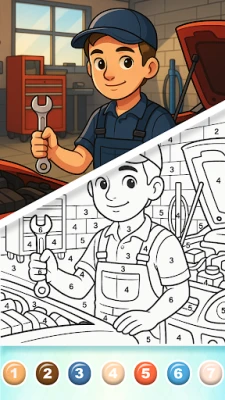 Color by Number Game: Match numbers to colors and reveal beautiful profession-themed artworks.