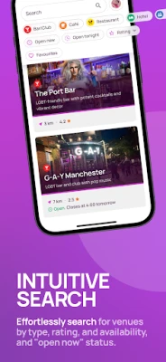 -Discover Queer Spaces: Easily find queer-friendly places, from popular gay bars and clubs to inclusive restaurants and events.