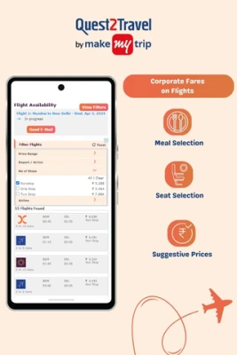 Download Quest2Travel – your trusted corporate travel app by MakeMyTrip to discover the convenience of seamless business travel. From booking flights and hotels to managing budget & expenses, this self-booking tool simplifies every aspect of your journey within no time.