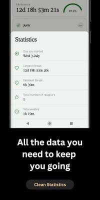 With a sleek material design 🎨, it provides a clean and intuitive interface. You can log relapses, view detailed statistics 📊, and gain insights into your progress—all without any ads 🚫.